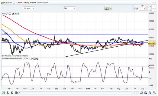 EUR/USD weakness looks to bring out the buyersThe pair has yet to regain the heights seen earlier in the year at $1.15, and yesterday’s sharp reversal suggests a period of USD strength may be in the offing. As a result we could see a move back to the 200-day simple moving average ($1.1078), and then perhaps down to the late-July low around $1.0950.