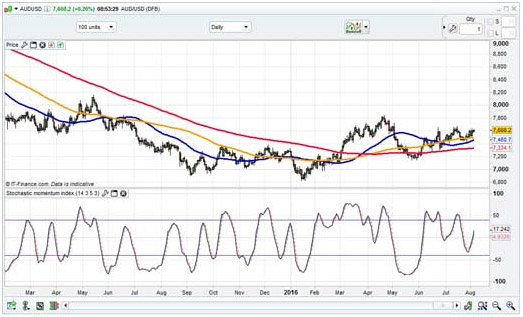 AUD/USD gains stallAUD/USD gains have stalled since late June around $0.76, with the past few days repeating that pattern. Nonetheless, for now the uptrend goes on, so weakness back in the direction of $0.74 could see fresh buyers emerge.
