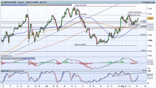 This plays on the idea of yet another failure to create a new high following the break below $0.7162 earlier in the week. This would likely coincide with the stochastic coming into trendline resistance. This bearish view would be negated with an hourly close above $0.7256.