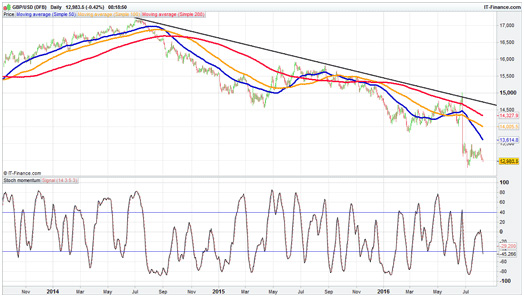GBP/USD lower thanks to BoE hintingCable’s downward move has been helped along by fresh hints that more easing will be on the way from the Bank of England. As yesterday, we still wait to see if the pair can head back to $1.28, the lows from the beginning of July.