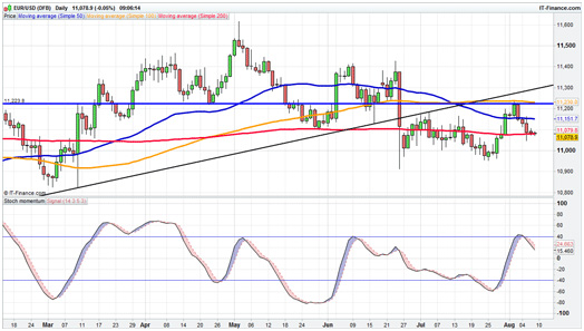 EUR/USD looks to push lowerYesterday saw the pair hover above the 200-day simple moving average ($1.1080), and now it looks to push lower, putting the $1.10 area in the frame as the next possible destination.