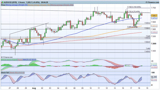 As such, as long as we do not break above $0.7749, there is reason to believe we will see the pair turn lower once more today. Support levels of note are $0.7636 and $0.7609.