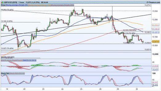 However, much like the move overnight, it is well worth watching out for any countertrend pullbacks for a more advantageous area to get into the trend. The bearish outlook remains in place unless we see an hourly close above $1.3120.