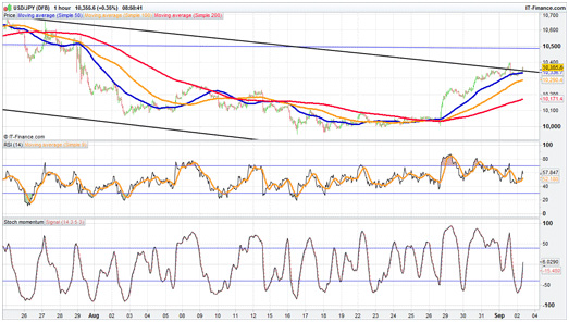 USD/JPY tests 2016 downtrendThe 2016 downtrend is being tested once again, with USD/JPY trying to succeed where yesterday’s rally to ¥104 failed. If it does push through ¥104, then the next target would be ¥106.