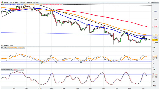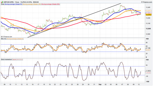 EUR/USD tries to regain lost groundFriday’s sell-off caught the euro too, but since hitting $1.12, the pair has climbed doggedly higher. A failure to push on from here could indicate a new lower high off the pre-European Central Bank peak, so the pair needs to push on through $1.1280 and then close above $1.13. A dip could see support at $1.12, Friday’s low, but a close below here opens the way to the 5/6 September lows around $1.1140.