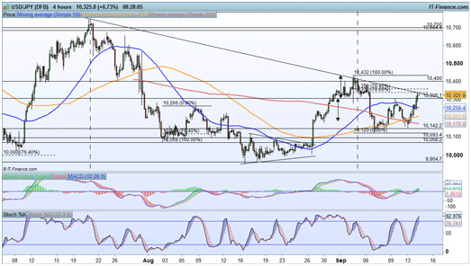 As ever, the most important thing would be the ability to break the next swing high, which means that even if price passes through this trendline, it would have to break above ¥104.32 to provide a bullish medium-term outlook.