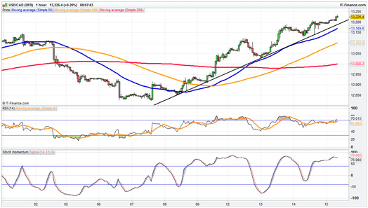USD/CAD pushes to July highThis pair offers another great trend, if it is rather steep at present. The price showed distinct reluctance to stay below C$1.3150, but with the August and September peaks now exceeded, the target to watch is the July high at C$1.3255.