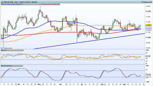 EUR/USD puts buyers in chargeThe pair spent Friday gathering strength after losses in the overnight session, and this morning we have seen fresh buyers push the pair back towards the Thursday high at $1.1260, the area where gains stalled in the period 12-16 September.
