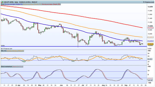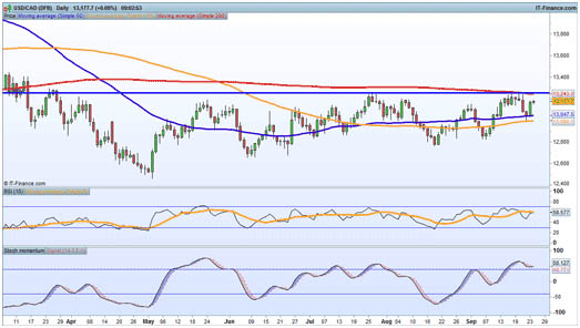 Gains have so far stalled at C$1.3180, but further moves upward today should see the pair test the 200-day SMA (C$1.3243) again. C$1.3250 is the big level to watch, having essentially capped the pair since June.