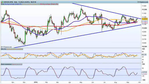 EUR/USD could move back to 200-day SMAYesterday saw the pair hit the descending trendline off the May high, which capped gains in August and earlier in September.