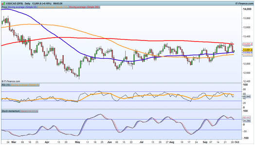 Continued Loonie strength here could see the pair push below the 50-day SMA (C$1.3052). It is still relatively oversold intraday, so a move back towards C$1.3130 could provide a more attractive entry.