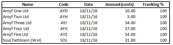 (ASX:SOL) will pay 31 cents fully franked and Australian Masters Yield Fund No 5 Limited