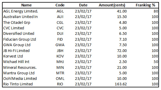 (ASX:RIO) who will pay 163.6 cents, fully franked.