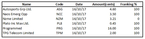 Ex-dividends6 companies are going ex-dividend today, including Programmed which is paying 16 cents fully franked and TPG Telecom