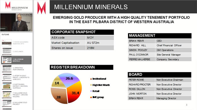 Millennium Minerals Limited (ASX:MOY) CEO and Managing Director Brian Rear presents at the RIU Melbourne Resources Round-Up Conference September 2013.