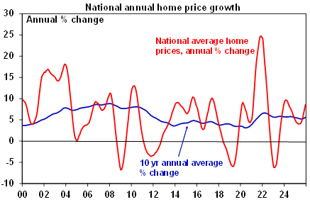 So what to expect this year? The combination of the lagged effect of this year’s rate cuts, the expanded first home buyer 5% deposit scheme and the Help to Buy scheme, improved consumer confidence and the ongoing shortage of housing are likely to keep the upswing in property prices going in 2026. And the slowdown in prices in December is likely exaggerated by seasonal influences which should reverse in the months ahead. However, the pace of gains is likely to slow from that seen in 2025 as the interest rate outlook has turned less favourable with talk that the next move in rates will be up, APRA starting to ramp up controls to slow risky or speculative lending and affordability is now worse than ever.