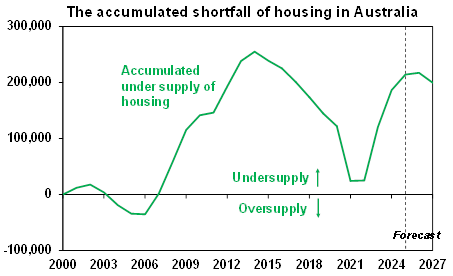 - While a slowing in population growth and improving housing completions brought the property market into better balance on annual basis, there was and still is an accumulated housing shortfall – of around 200,000 to 300,000 dwellings – that has built up over the last few years of under building.
