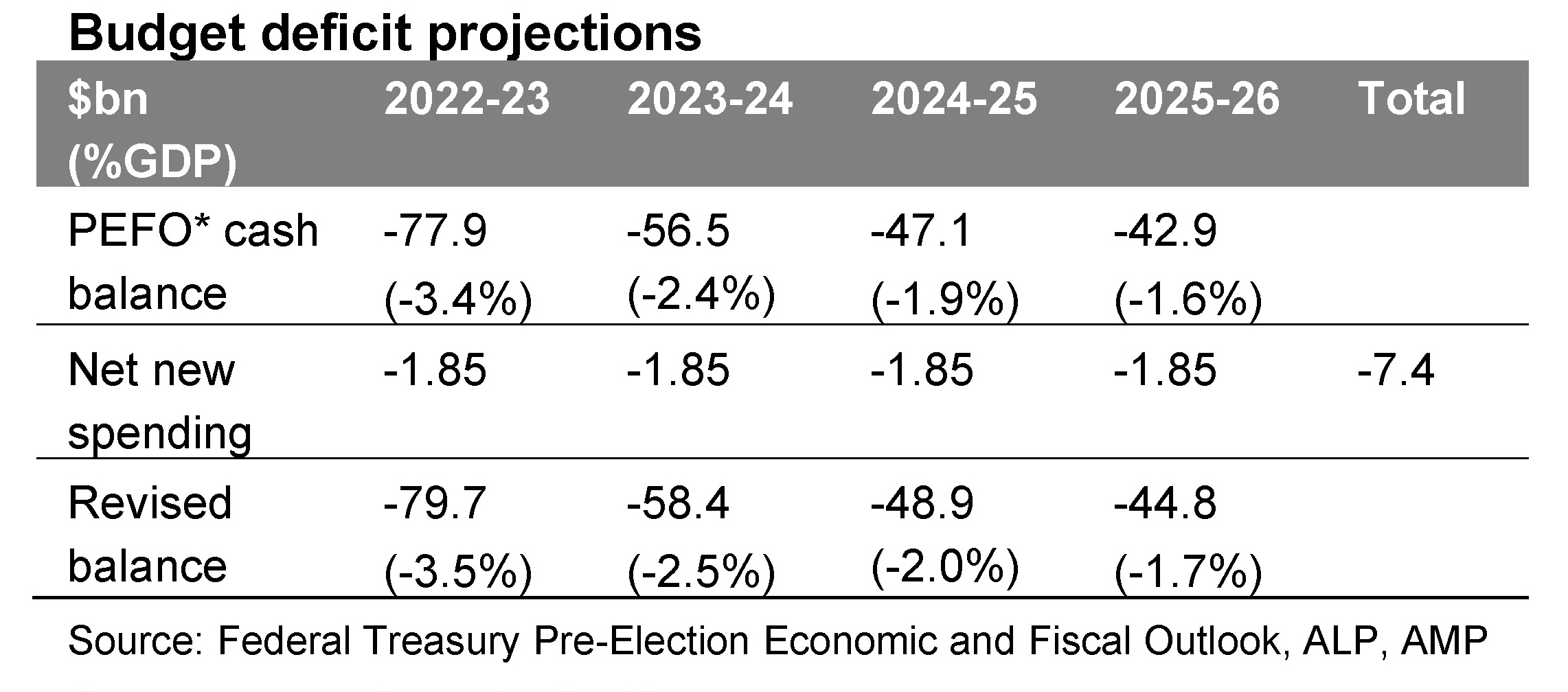 Australia has a new governmentThe ALP won the election and is set to Govern most likely in its in own right or as a minority government. Following its loss in the 2019 election which was partly blamed on a “radical” tax & spend agenda, the ALP adopted a “small target” approach this time, so its economic policies are not significantly different to those of the outgoing Coalition Government. However, there are still some areas of difference and uncertainty. This note looks at what is expected in terms of policies and implications for the budget, economy & investment markets.