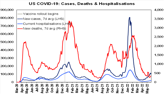 While the US is seeing a rising trend its relatively mild and hospitalisations and deaths (which are not affected by people not reporting) remain subdued.