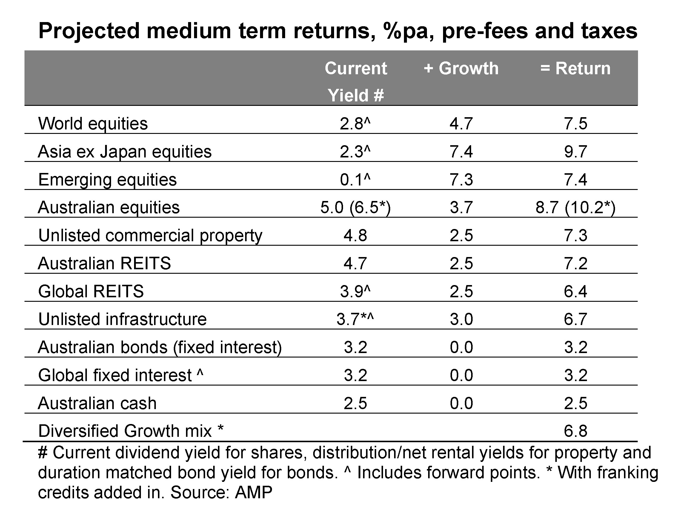 Dr Shane Oliver, Head of Investment Strategy & Chief Economist at AMP, discusses the medium-term potential for major investment asset classes.Key points:- The fall in bond and share values and rise in their investment yields on the back of higher inflation has seen our medium term (5 to 10 year) return projections for a diversified mix of assets rise to around 6.8% pa.