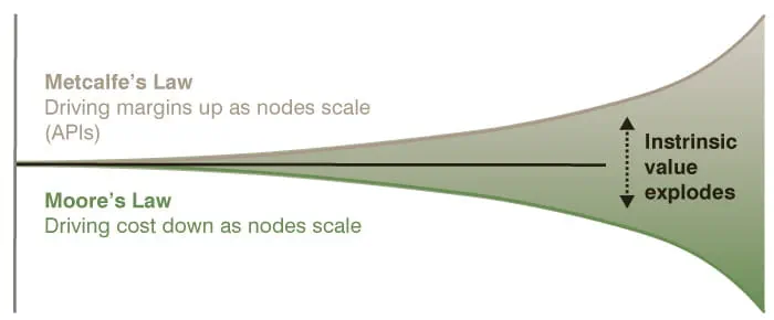 25% of global emissions are connected to food and a third of food that is created goes to waste. Both these facts are driving the need for change on a huge scale. Further, 99% of fish face extinction as acidity levels rise, coral reefs are destroyed and phytoplankton decline precipitously. In short, ocean and land-based ecosystems must change. Technology is now able to contribute to that change in the same way as it has in other industries, driven by Moore’s Law and Metcalfe’s Law.