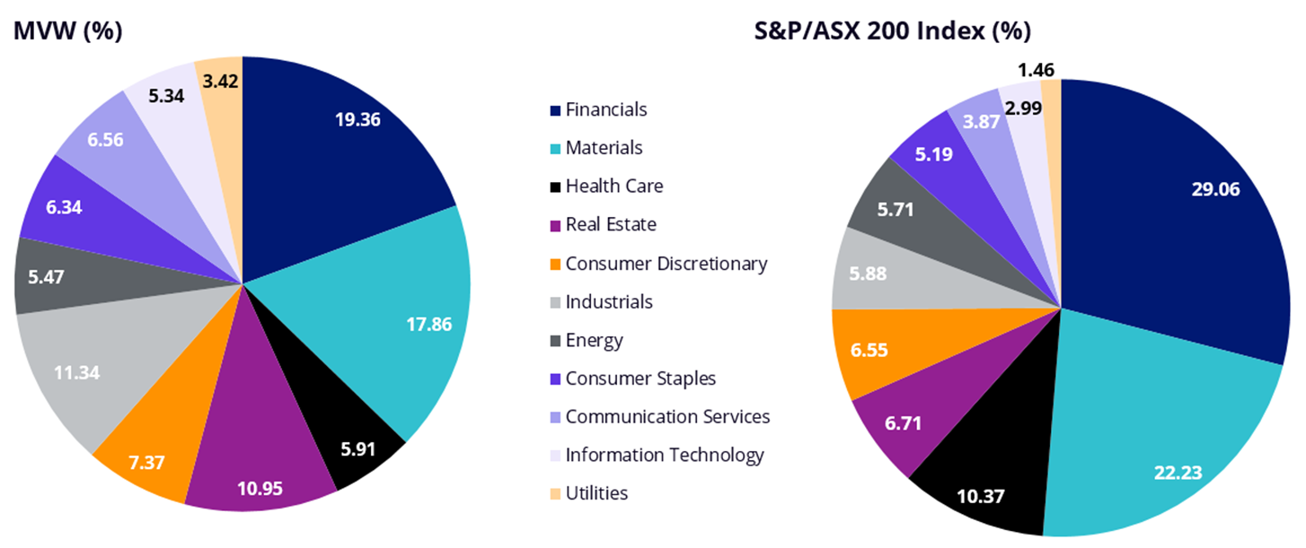 Figure 3: S&P/ASX 200 and MVW sector weightings (%)