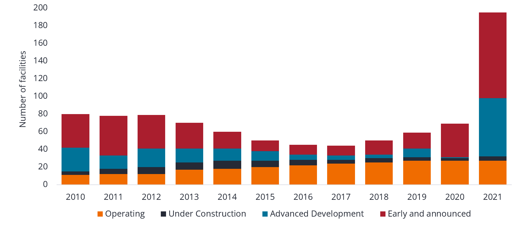 Chart 1: Global pipeline of commercial CCUS facilities operating and in development