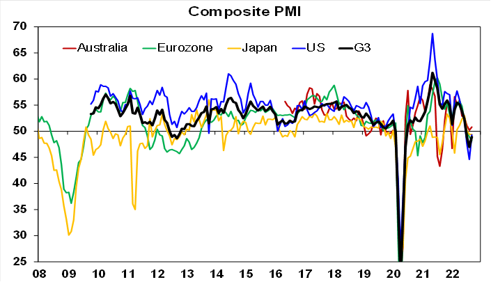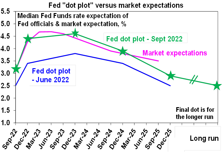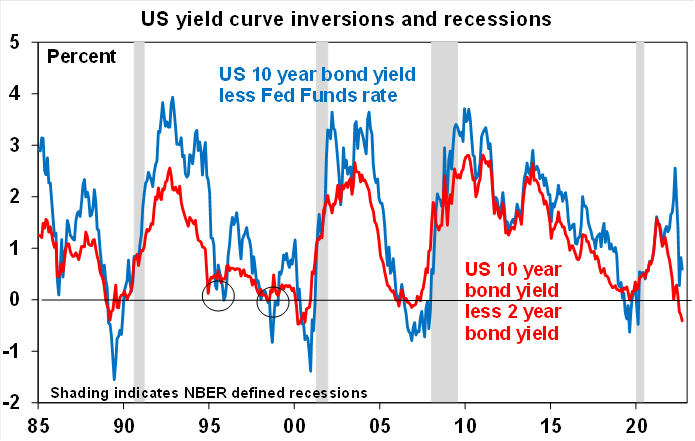 The commitment of central banks to getting inflation down is good news as a sustained return to a 1970s style high inflation would be very bad for economies, living standards, jobs & investment markets. The danger though is that the Fed and other central banks have become locked into supersized hikes based on backward looking inflation and jobs data and a loss of confidence in their ability to forecast inflation at a time when they should be giving more attention to monetary policy lags. This increases the risk of overtightening driving a deep recession. (Just as in hindsight they were too slow to start hiking.) Fed tightening and hawkishness has seen the US 10 year-2 year yield curve further invert strengthening its recession warning, with the more reliable 10 year-Fed Funds rate curve yet to invert but getting close.