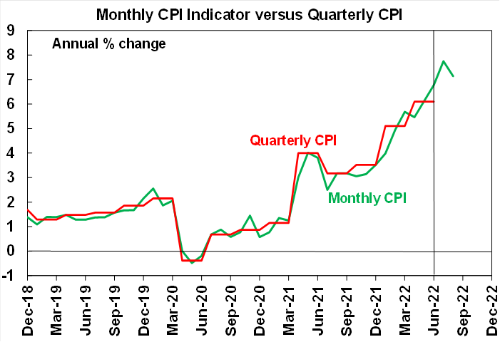ABS Monthly CPI Indicator to show a further rise in Australian inflation. The ABS has decided to bring forward the release of its monthly CPI Indicator to 29 September with data for July and August. As at June it had already increased to 6.8%yoy. Based partly on the already released Melbourne Institute’s Inflation Gauge showing a sharp rise in July and some fall back in August we expect it to show that monthly inflation rose to 7.8%yoy in July and fell back to around 7.1%yoy in August. Note that this volatility is partly due to the base effect of a strong rise in August last year. Caution should be applied in interpreting it at least initially as: it only updates around two thirds of CPI items and will be subject to revisions; it will be very volatile month to month; and there will be no trimmed mean or median initially making it hard to assess underlying pressures. The RBA has indicated that it could take time for reliable trends to be discerned and reflecting this Deputy Governor Bullock has noted that its “unlikely” to have much impact on the October rates decision. But a big move either way may be hard to ignore and could impact market volatility.