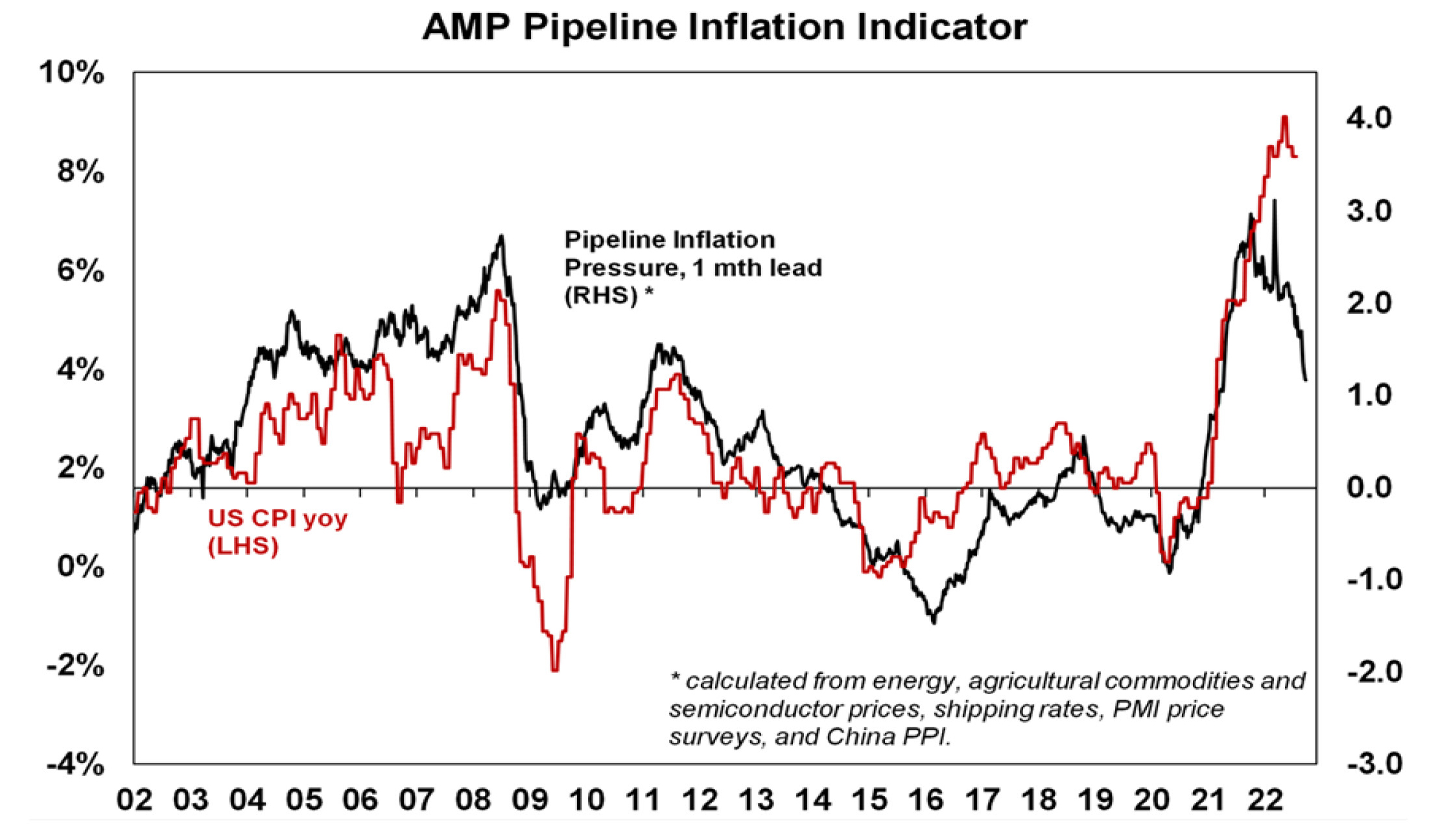 - This is consistent with our Pipeline Inflation Indicator which is continuing to trend down given falling price and cost components in business surveys, falling freight rates and lower commodity prices (outside of gas and coal).