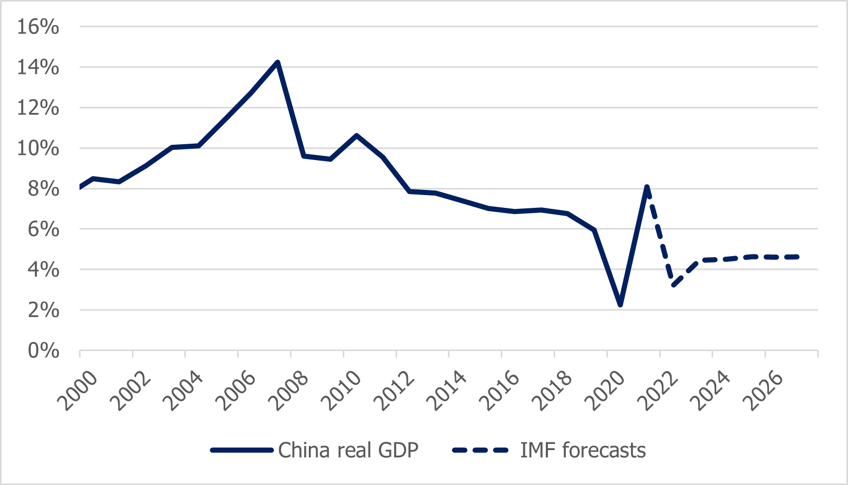 Source: China’s economic statistics come from the IMF’s World Economic Outlook Database released in April 2022 unless otherwise stated. The database can be found at: