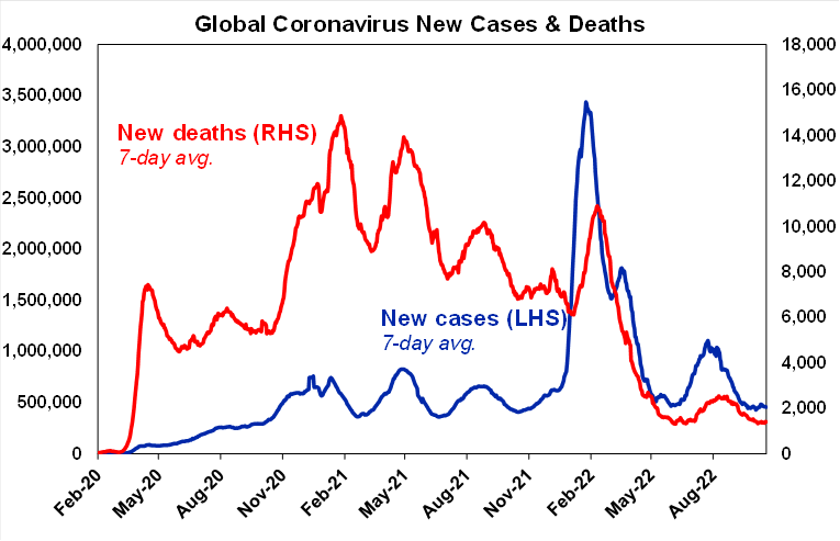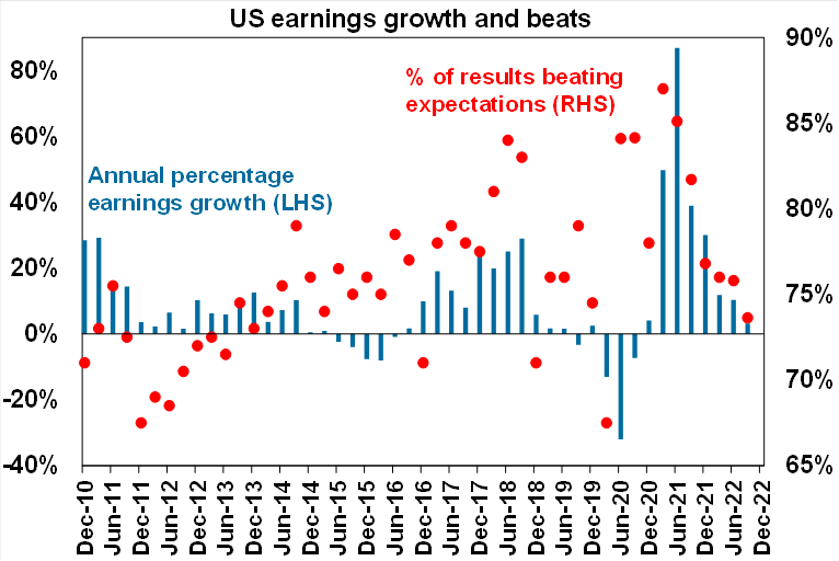 The RBA’s minutes from its last meeting and a speech by Deputy Governor Bullock highlighted that its prepared to take its own path to return inflation to target. The decision to hike 0.25% or 0.5% at the last meeting was “finely balanced” but it went with 0.25% for what I see as all the right reasons: the rapidity of rate hikes so far; the lags in the way rate hikes impact the economy; clear evidence that rate hikes were impacting in the housing market; more modest wages growth in Australia compared to other countries; the deteriorating global outlook; to allow time to assess the impact of rate hikes so far; drawing rate hikes out would underline its resolve; and the RBA meets more frequently than other central banks. The RBA clearly remains hawkish with its reference to “drawing out policy adjustments” and that returning inflation to target “was likely to require further increases in interest rates”. So it’s not done yet. But absent a shock horror inflation result in the week ahead its likely to stick to 0.25% increments going forward. Signs of slowing jobs growth also support the case for more cautious moves going forward and our assessment that we are near the peak in the cash rate. Our base case remains for a peak of 2.85% in the cash rate, but we accept the risk is on the upside but probably only to 3.1%. Money market expectations for the cash rate to rise above 4% next year still look way too hawkish as they would crash the economy and the property market.