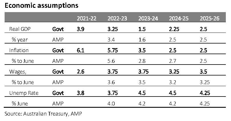 Economic assumptionsSince the March Budget there has been a significant deterioration in the outlook reflecting high price and cost pressures (not helped by the war in Ukraine and natural disasters), aggressive monetary tightening in response and falling real wages. As a result, the Government has revised up its inflation forecasts to allow for a slower decline through next year (although it still sees a peak this year at 7.75%), downgraded its GDP growth forecast for 2023-24 to just 1.5% mainly due to weaker consumer spending and revised up its unemployment forecast for mid 2024 to 4.5%. We are a bit more optimistic on the speed with which inflation will fall next year.