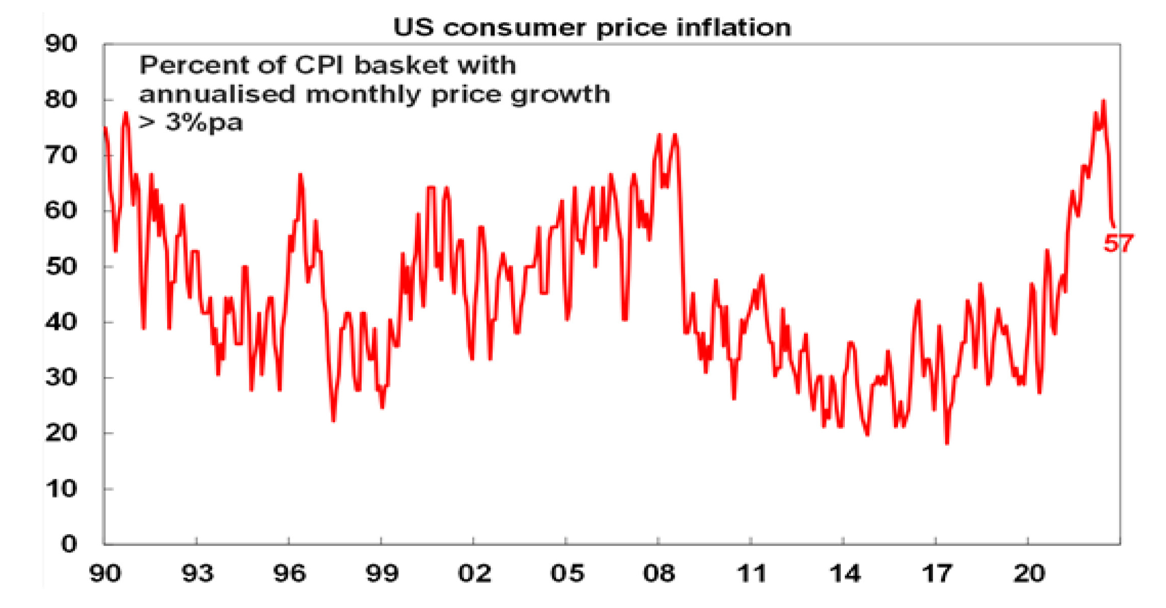 What’s more, the proportion of CPI components with annualised monthly inflation above 3%yoy is falling sharply.