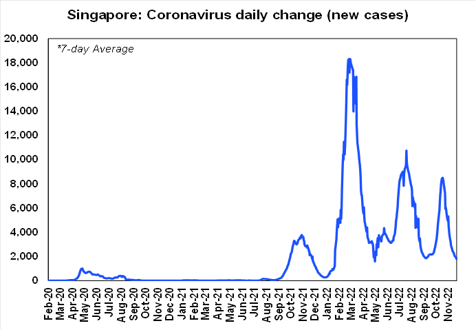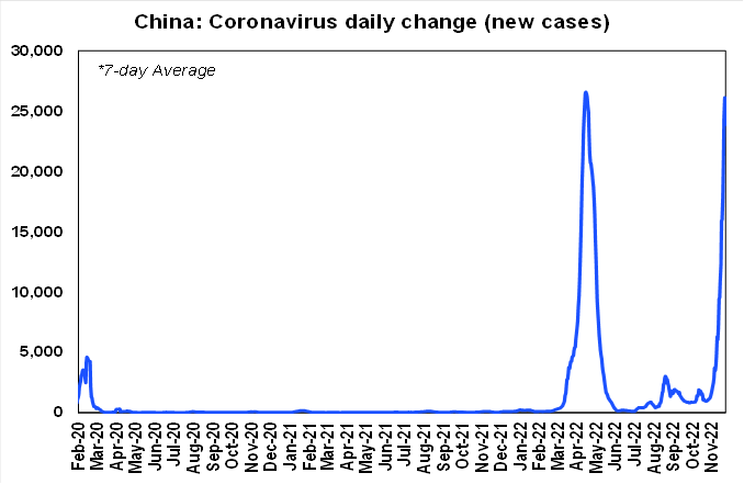 New global Covid cases and deaths rose further over the last week reflecting an ongoing rise in Asia, including Japan, albeit both remain low. New cases in China are above levels seen earlier this year and its lockdowns are tightening. We still expect China to exit its zero covid policy around March next year.