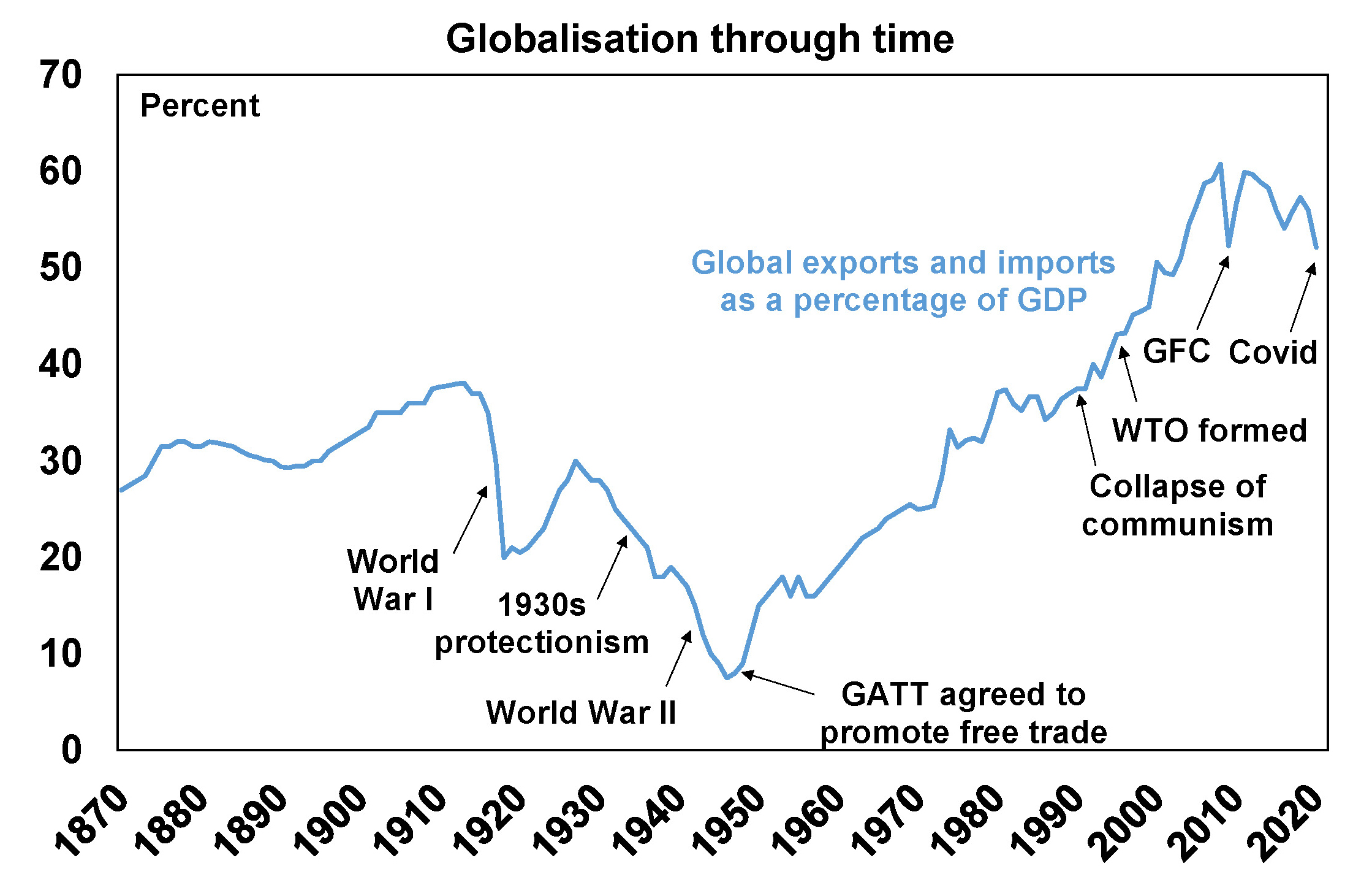 But the trend towards freer trade stalled in the 2000s, trade barriers are on the rise and trading blocks are being formed. The pandemic and rising geopolitical tensions are accelerating this reversal as countries seek to onshore production to reduce threats to supply chains spurred on by resurgent nationalist sentiment and a return to scepticism of free trade. The reversal of globalisation looks like it has a way to play out yet. Inevitably it will lead to higher costs and hence inflationary pressure.