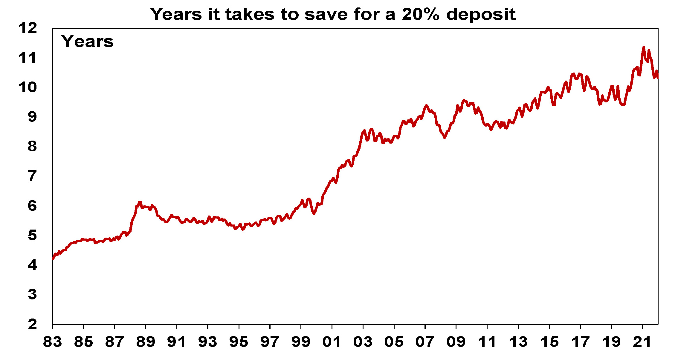This assumes that the buyer saves 15% of their income each year. Source: RBA, CoreLogic, AMP