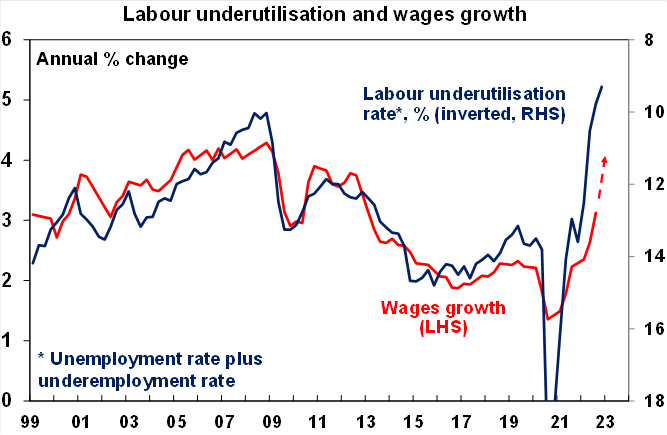 Australian jobs data was strong again in November. Employment surged by 64,000 but unemployment was unchanged at 3.4% as labour force participation rose to a new record high. The boost to employment looks partly due to the return of immigration (particularly foreign students) filling job vacancies and this should go some way to reducing labour market tightness over time. However, right now the labour market still looks very tight and the further fall in underemployment and underutilisation continues to point to a further rise in wages growth ahead. This in turn will continue to put pressure on the RBA for more rate hikes. There is another jobs report to go before the next RBA meeting and the labour market is a lagging indicator so there is a danger in relying too much on it particularly when other data is pointing to a sharp slowdown in growth. Our base case remains that the cash rate has peaked, but the risk is high of one more hike to 3.35%.