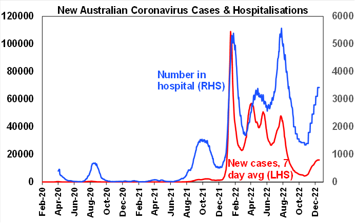 While China has seen new Covid cases fall sharply this may reflect reduced testing as it eases Covid restrictions. Just as Australia and other countries saw when they reopened, its likely to see a sharp spike in new cases, hospitalisations and deaths in the months ahead but this should settle down by around the June quarter allowing - along with the likely further removal of restrictions & more stimulus measures - a strong rebound in economic growth.