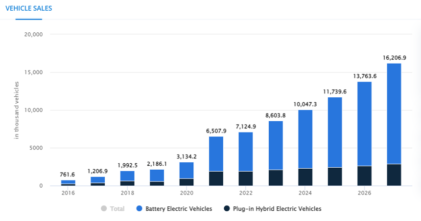 Source: ‘Electric Vehicles – Worldwide,’ Statista.