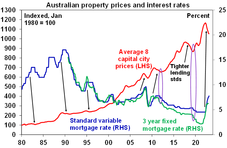 But for now, the property market will likely be dominated by high and still rising mortgage rates and so further falls in prices are likely despite the stabilisation seen in February.