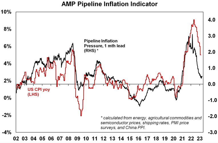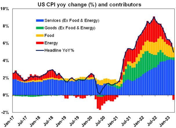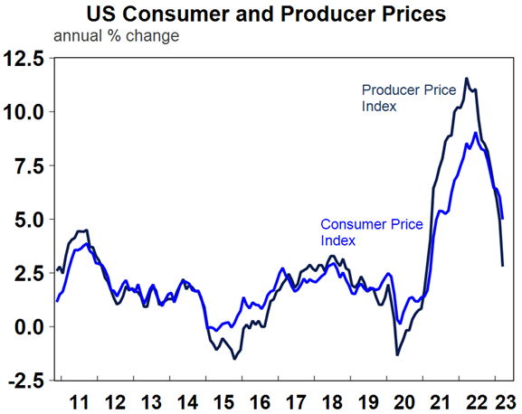 Inflation pressures are continuing to recede. This was evident in a further fall in US inflation and even Indian inflation falling to a 15-month low. US inflation fell to 5%yoy in March with a sharp slowing in annual energy and goods price inflation leaving it well down from its high of 9.1% in mid last year.