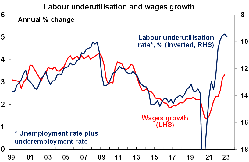 Australian economic events and implicationsThe Australian jobs market remained surprisingly strong in March. Employment rose by another 53,000, participation rose to a near record high, and unemployment was unchanged at 3.5%. Underemployment and labour underutilisation rose slightly though but the overall message is that jobs market remains tight and this runs the risk of a wages breakout. So far wages growth remains “three point something” which is consistent with the 2-3% inflation target but the continuing tight labour market, the lifting of public sector wage growth caps in NSW and Victoria and claims for a 7% increase in the minimum wage all point to upside risks for wages growth which will concern the RBA. So taken on its own the March jobs data adds to the case for another rate hike in May. However, the jobs market at least does not appear to be getting any tighter, it’s a lagging indicator and falling job openings and surging immigration point to a softer jobs market ahead. So, along with other signs of slowing growth and inflation, it makes more sense for the RBA to remain on hold which is our base case, but it’s a close call. The next round of inflation data will clearly be watched closely.