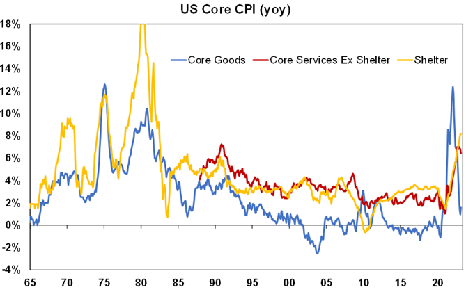 While US core (ie, ex food and energy) inflation remains sticky at 5.6%yoy due to high services inflation, core services inflation excluding shelter (a key focus of Fed Chair Powell) is starting to slow and shelter (or rent) inflation is also starting to slow with advertised rents pointing to a further slowdown ahead.