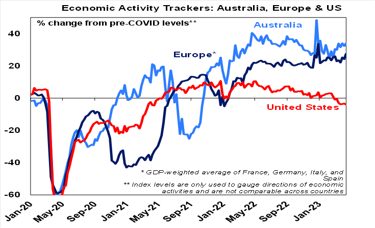 Our Economic Activity Trackers rose in Europe and Australia as hotel occupancy rose and were revised up in recent weeks reflecting new higher restaurant booking activity. Our US Tracker was revised lower.