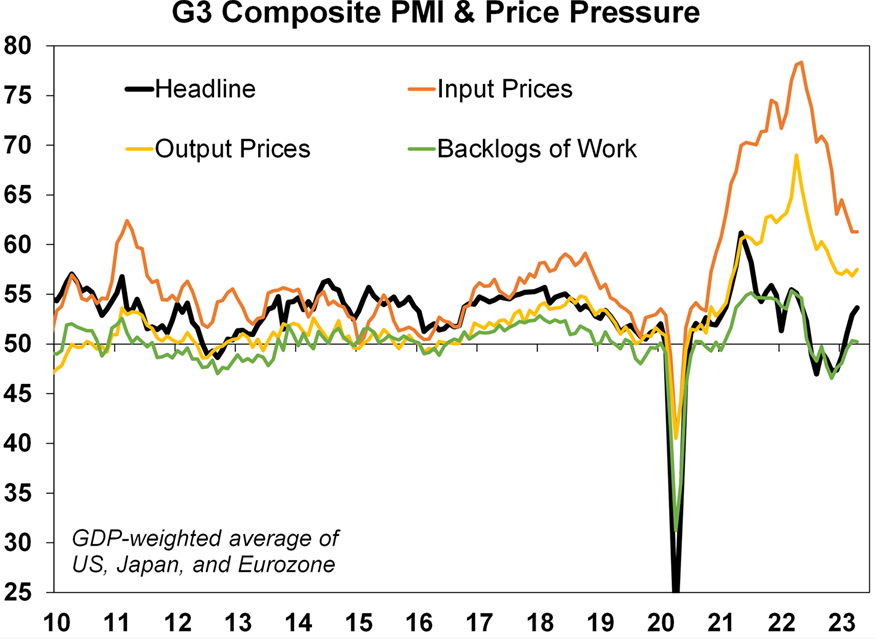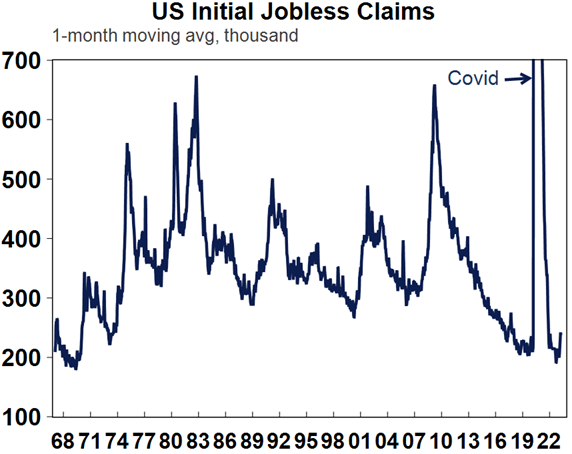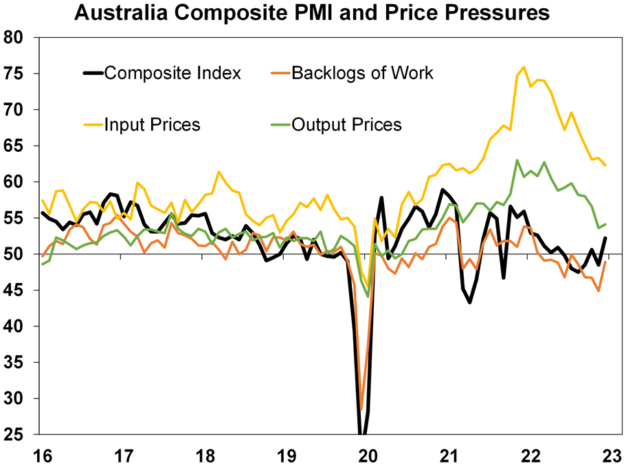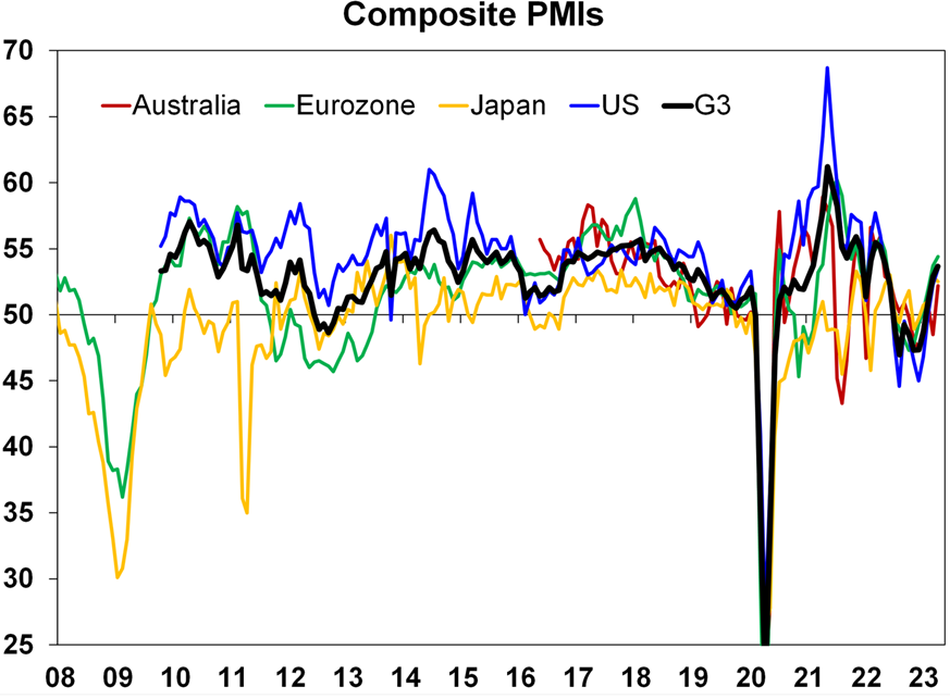 Apart from the PMIs, US economic data was mostly weak. Manufacturing conditions rebounded in the New York region in April but this may be seasonal as the same thing happened last April and the Philadelphia manufacturing conditions index fell to a new low. Housing starts and permits fell in March but with a further slight improvement in home builder conditions look to be trying to stabilise. Leading indicators continue to warn of a sharp slowdown ahead if not recession and jobless claims rose further pointing to a further weakening in the labour market. The Fed’s Beige Book reported basically flat economic activity, some slowing in employment and inflation and a tightening in lending conditions. Fed emergency lending to banks also ticked up a bit over the week suggesting that while banking stress may be contained it hasn’t gone away.