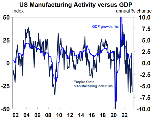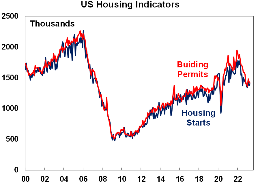 While shares could have a further tactical bounce if there is quick US debt ceiling deal, they continue to look vulnerable over the next few months. From their lows last year global and US shares are up 17% and Australian shares are up 13% as investors have been buoyed by evidence of peaking inflation, anticipation that central banks are near the top and so far resilient growth and profits. However, we remain of the view that global and Australian share markets are vulnerable to a rougher period ahead: share market gains so far have been narrowly based favouring defensive sectors than would be normal at this point in a recovery; US debt ceiling brinkmanship and eventual resolution could create volatility ahead; banking stress is continuing in fits and starts in the US resulting in additional monetary tightening; leading economic indicators continue to point to a high risk of recession in the US and Australia; China’s recovery is looking less robust; metal and energy prices have softened with oil down despite several OPEC supply cuts suggesting weakening demand; central banks are probably close to the top but risk doing more; and the period from May to September is often rough for shares. We remain of the view that shares will do okay on a 12-month view as central banks ease up but the next few months are likely to be rough.