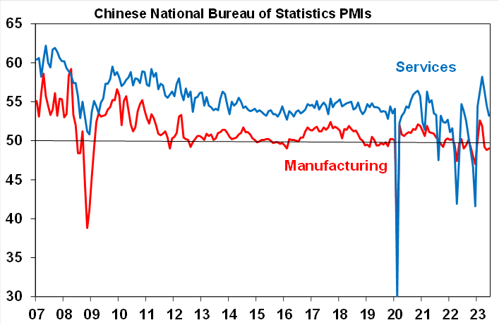 The risk remains high that the Fed, ECB and BoE will end up tightening more than necessary as the news flow on inflation remains positive - with Canadian inflation falling further to 3.4%yoy (from a peak last year of 8.1%), German inflation rising slightly in May but inflation falling further in Italy, Belgium and Spain (where its just 1.9%yoy), US business surveys continuing to show falling inflation pressures along with our US Pipeline Inflation Indicator and Australia’s Monthly CPI Indicator falling to 5.6%yoy in May. While services inflation remains high in many countries, it lagged on the way up and is likely just doing the same thing on the way down. Similarly, while Australian inflation is higher than in the US and Canada this appears to be because it lagged both countries on the way up and so is just doing the same on the way down.