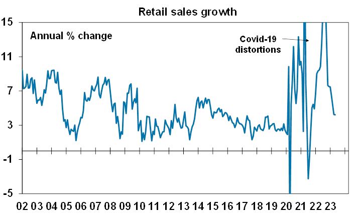 Australian economic events and implicationsAustralian retail sales rose a stronger than expected 0.7% in May. But the ABS notes that it looks due to earlier than normal end of financial year discounting, suggesting a pullback in June. In any case retail sales are little changed since November and have been trending down in real terms as rate hikes weigh on discretionary consumer spending and this is likely to continue. However, continuing strength in demand for services like eating out will likely worry the RBA for now.
