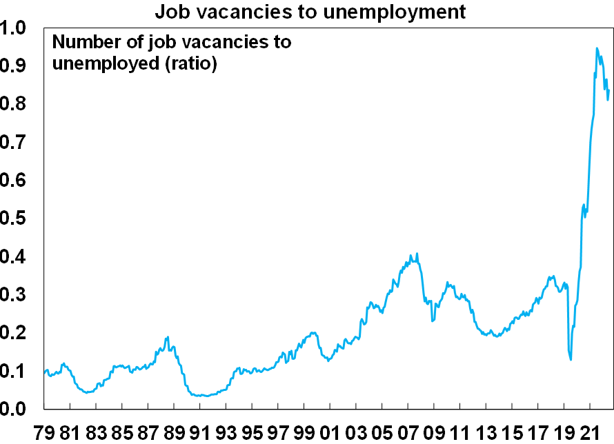 Job vacancies down again but remaining high. Job vacancies as measured by the ABS fell 2% over the three months to May making their fourth consecutive quarterly decline. However, the ratio of job vacancies to unemployment remains very high indicating that the jobs market while cooling remains very tight posing ongoing upside risks to wages growth.